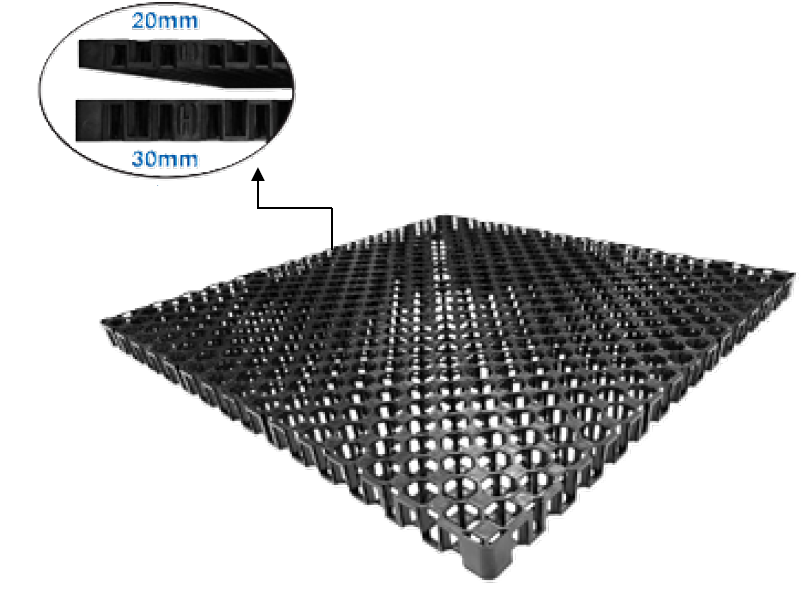 DX Drainage Cell is a modular, high-strength drainage panel made from UV-stabilized polypropylene (PP), designed to manage subsurface water while protecting waterproofing membranes. Its open-grid structure provides high void space, allowing efficient water flow, ventilation, and thermal insulation. Compared to traditional gravel systems, DX Drainage Cell is lightweight, easy to install, and significantly reduces structural load. It is biologically and chemically resistant, making it ideal for long-term use in landscaping, podium decks, and green infrastructure.