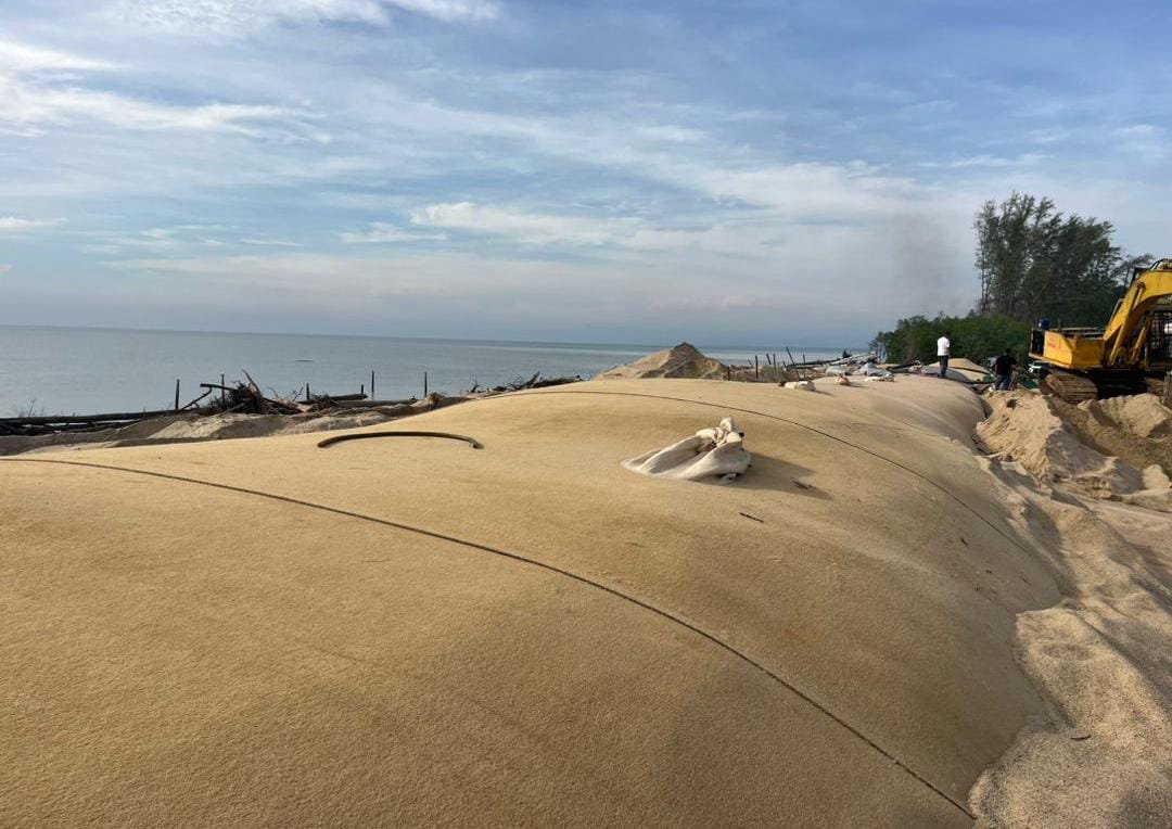 DX PET Geobag is a high-strength geotextile container made from UV-resistant polyester (PET), designed for shoreline protection, slope stabilization, sludge dewatering, and environmental restoration. These flexible bags are filled on-site with sand, soil, or slurry and used to form soft, erosion-resistant structures. The PET fabric offers excellent tensile strength, tear resistance, and chemical durability, while its permeability allows water to escape and solids to be retained — making DX PET Geobags ideal for both hydraulic and ecological applications.